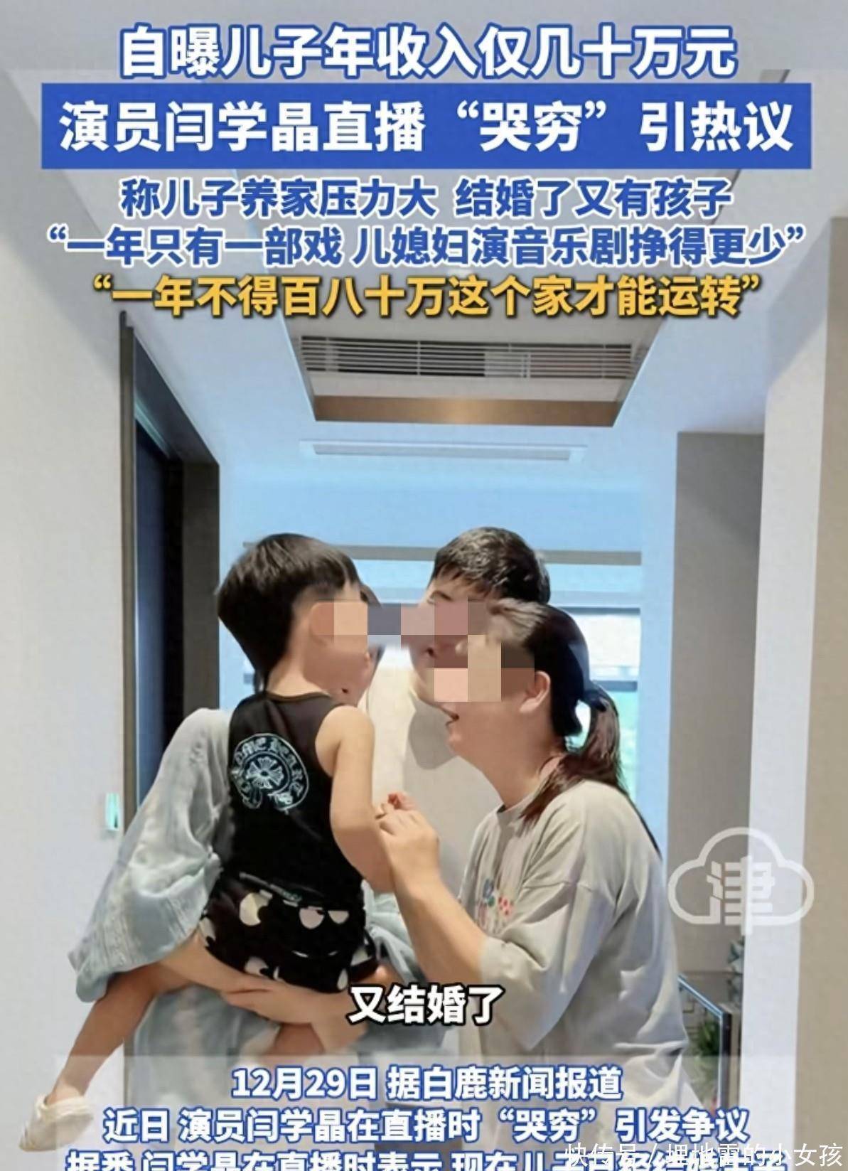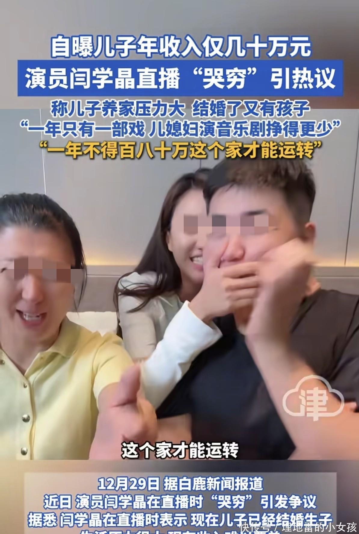 32了,拍戏一年挣二三十万,儿媳妇唱音乐剧一年不到十万,俩人加一万出头。她愁眉苦脸地说,这钱在北京不够花,一家子一年得百八十万才能转开。